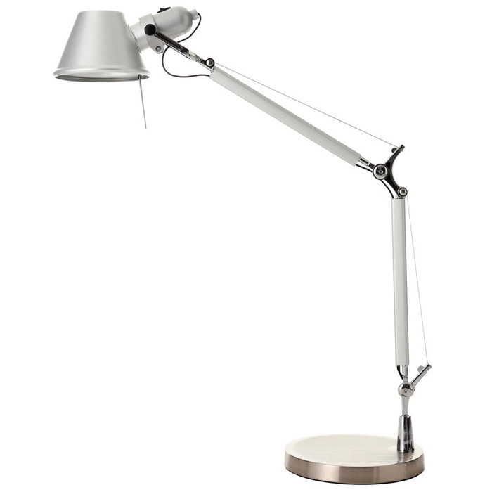 トロメオ テーブルランプ 照明 ライト おしゃれ ポストモダン インダストリアル デザイナーズ ミケーレ・デ・ルッキ 家具 インテリア リプロダクト CT612【お取り寄せ】 【DETAILS】 イタリア人デザイナーのミケーレ・デ・ルッキがデザインしたスタイリッシュなテーブルライト「トロメオ テーブルランプ」です。 ステンレスワイヤーの張力によりアームを保持し、自由に角度を変えることができます。 アームやワイヤー支持部など、工業デザインの要素が組み込まれた機能的なデザインは、見るものを惹きつけます。艶消しアルミニウムのボディも洗練されていて、長くお使いいただける逸品となっています。 アルミニウムのヘッド部分は360度回転するので、ポイントで小さな部分を照らすのに最適です。また、天井や壁面に光を当てて間接照明としてもお使いいただけます。
