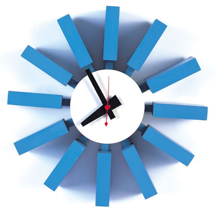 [サイズ]W30.5x D7.5x H30.5(cm)重量 約1.kg[素材]ソリッドウッド・スチール[生産国]中国[商品説明]爽やかなブルーの木製ブロックを放射線状に配置したアメリカ人デザイナーらしいポップな時計です。温かみのある木製ブロックは子供部屋にもオススメ!さらにカフェや美容室などの空間とも相性バツグンの逸品です。お部屋のアクセントとして、思い切って目立ちやすいところへ飾ってみてはいかがでしょうか?[送料]全国一律無料 (沖縄・離島は配達不可)[備考]※在庫管理には細心の注意を払い管理致しておりますが出荷までにお時間がかかる場合がございます。※お急ぎの場合は必ず事前に在庫確認を行って下さい。こちらの商品は、リプロダクト(ジェネリック製品)となっております。著作権・意匠権が切れた商品を復刻した製品です。日本の法律に準拠し生産されており、販売、使用共に法解釈に則った商品ですので、ご安心ください。[商品保証について]本製品には、1年間の保証が付帯致します。保証期間内に、お客様の通常使用の範囲において発生した故障、不具合に就いては、当該製品の修理または交