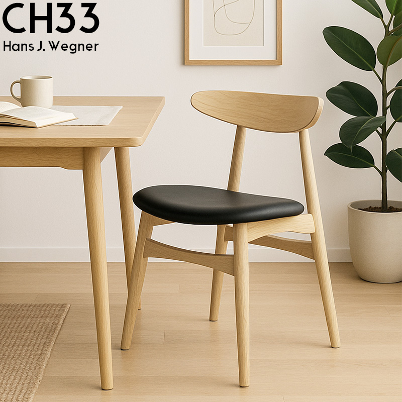 ■ダイニングチェア CH33 ハンス・J・ウェグナー リビング 椅子 イス 北欧 デザイナーズチェア レザー 木製 天然木 家具 おしゃれ P-20BJ
