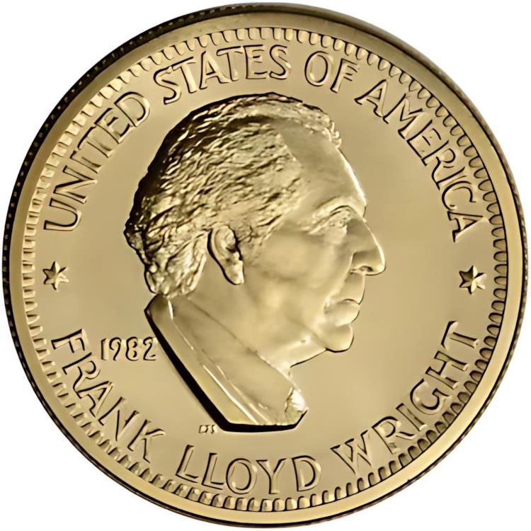 ■1982 米国ゴールド 1/2 オンス アメリカン アーツ記念メダル - フランク ロイド ライト BU