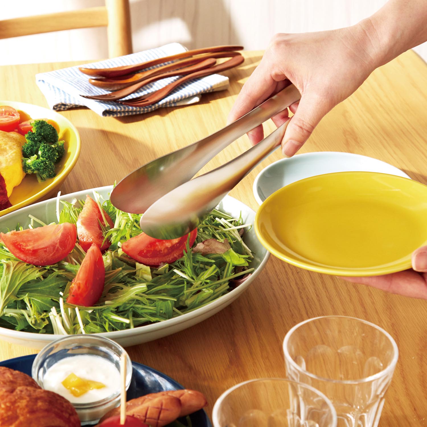 一枚の特殊なバネ材で出来ておりシンプルかつ美しい見た目になっており、つなぎ目がなくお手入れしやすいまた、先端の形状が特殊な形状をしており、つかむ・混ぜるはもちろんの事、鍋の隅っこにある食材もしっかり掴むことが出来ますサラダを取り分けたり、ソースを絡めたりするのにも活躍【柳宗理シリーズ】日本を代表するインダストリアルデザイナー。使い手の視点に立ち、手で模型を作りながら考えるデザイン手法を一貫して続け、日々の暮らしを豊かにするもの、長く使い続けられるものを数多くデザイン。シンプルでありながら洗練されたフォルム、長く使い続けられる耐久性と使いやすさを追求したキッチンウェアには、道具として使うことの本質を追求した普遍的で美しい形、「用の美」という柳宗理のもの作りへの理念がしっかりと生かされています。