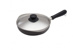 日本を代表するプロダクトデザイナー柳宗理がデザインしたフライパンです。表面に繊維状の凹凸をつけることで、食材と点で接して焦げ付きにくく、さらに窒化加工によりサビにくく従来の鉄フライパンより扱いが簡単な製品になっています。フタを回転させると本体との隙間が調節できるので、蒸気抜きやソースの取り分けが簡単にできます。グッドデザイン賞受賞。【取扱事業者:日本金属洋食器工業組合(日本洋食器 株式会社) TEL:0256-63-5121】