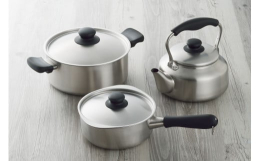 日本を代表するプロダクトデザイナー柳宗理がデザインした調理器具です。ケトルは注ぎやすさを考慮したハンドル形状と、お湯が早く沸くように底広に設計された本体形状が特徴です。片手鍋は注ぎやすさ、きれの良さを考慮してデザインされた特徴的な形状をしています。ふたを回転させることで本体との隙間の大きさを調節できます。吹きこぼれを防いだり煮汁を捨てるときに便利です。別売りのパンチングストレーナー19cmと組み合わせ可能です。両手鍋もつかみやすいハンドルなど使いやすさを第一に設計されています。グッドデザイン賞受賞。【取扱事業者:日本金属洋食器工業組合(日本洋食器 株式会社) TEL:0256-63-5121】