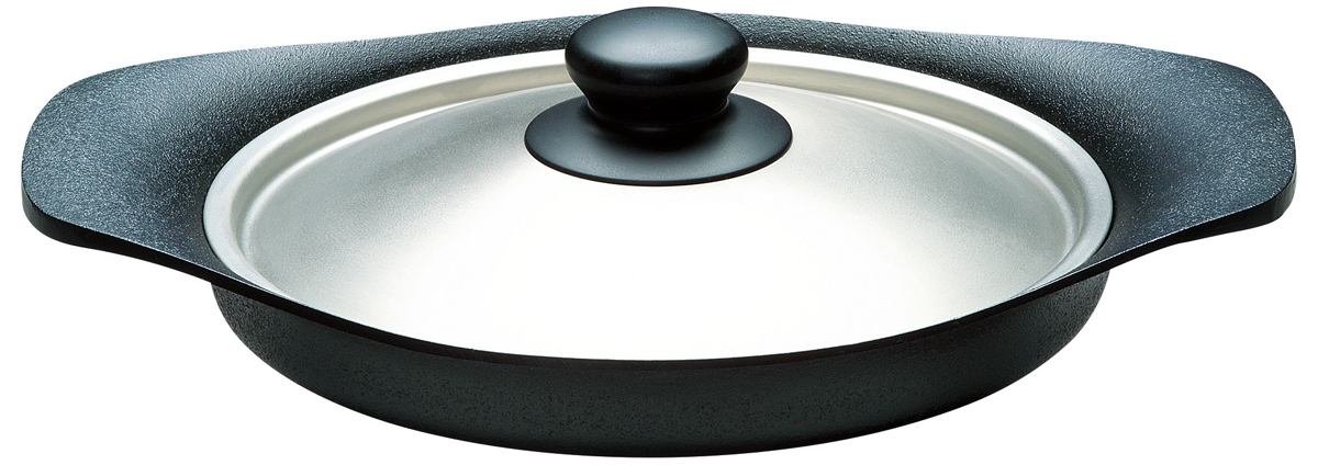 ■柳宗理 SORI YANAGI シンプルなデザインと高い実用性を兼ね備えた南部鉄器オイルパン 日本製 鉄蓋・ハンドル付 IH対応