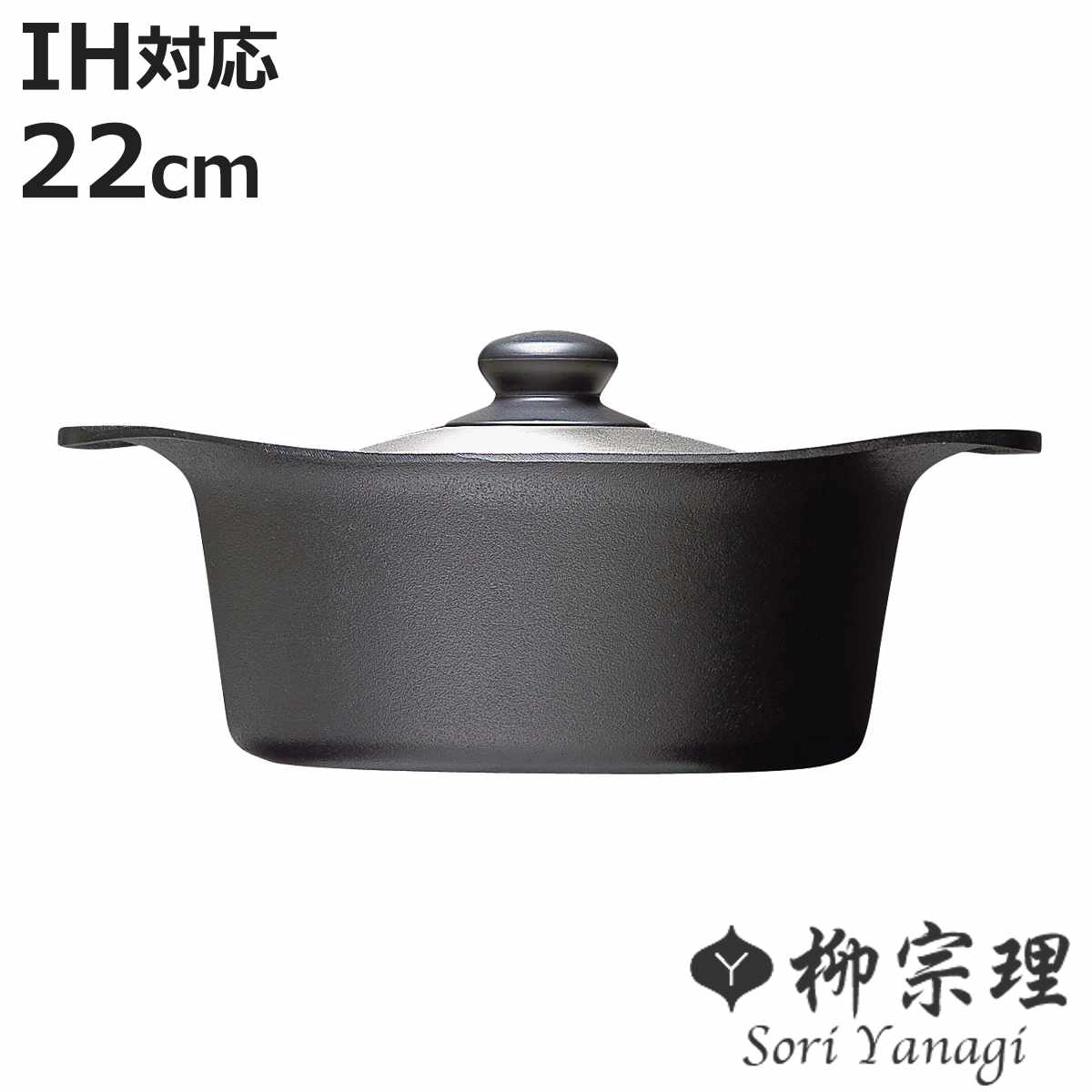 ■柳宗理 鉄鍋 22cm IH対応 深型 ステンレス蓋付き 南部鉄器 ( ガス火対応 南部鉄鍋 鉄製 両手鍋 深型鍋 日本製 22センチ 両手なべ 鍋 な