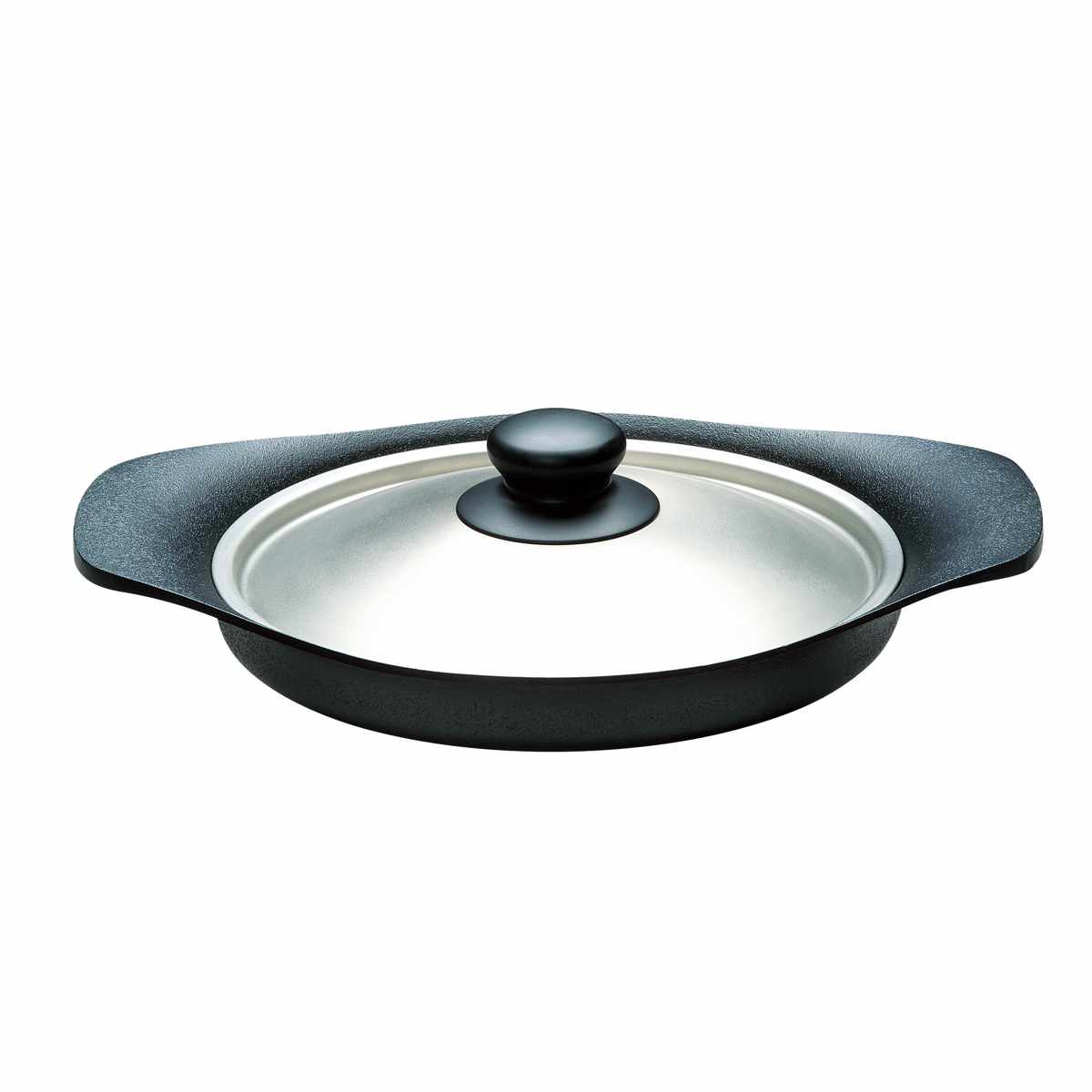 ■柳宗理 グリルパン 22cm IH対応 ステンレス蓋付き 南部鉄器 浅型鍋 ( ガス火対応 南部鉄鍋 鉄製 グリルプレート 鉄鍋 浅型 日本製 22セ