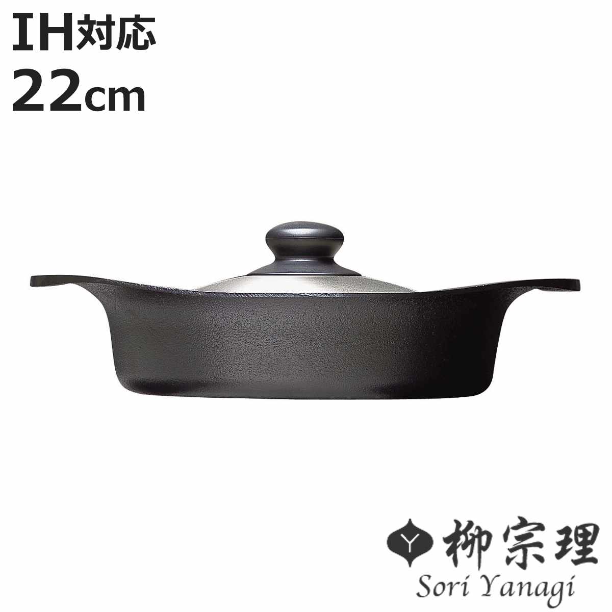 ■柳宗理 鉄鍋 22cm IH対応 浅型 ステンレス蓋付き 南部鉄器 ( ガス火対応 南部鉄鍋 鉄製 両手鍋 浅型鍋 日本製 22センチ 両手なべ 鍋 な