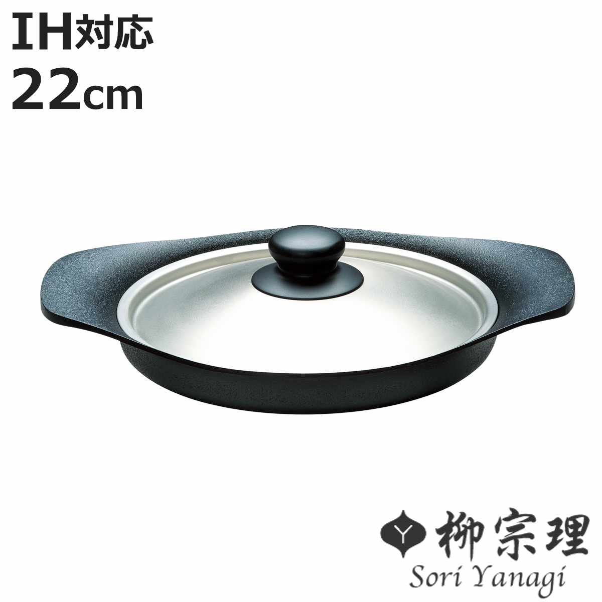 ■柳宗理 グリルパン 22cm IH対応 ステンレス蓋付き 南部鉄器 浅型鍋 ( ガス火対応 南部鉄鍋 鉄製 グリルプレート 鉄鍋 浅型 日本製 22セ