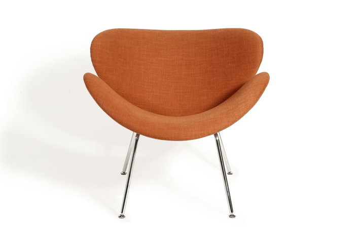 [サイズ]W82.5x D78x H76 SH44 (cm)[素材]張地:ファブリック クッション:高密度ウレタン フレーム:プライウッド 脚:ステンレススチール[カラー]・3A ライトグレー・3B ミディアムグレー・3C ダークグレー・3D ライトブルー・3E レイクブルー・3G レッド・3H オレンジ・3J ベージュ・3K ダークブラウン・3L ダークレッド・3M ペールピンク・3N イエロー・3P ネイビー[生産国]中国[商品説明]オレンジスライスはファッション性に富み、今までの家具にはなかった流麗な美しさを表現しています。スライスしたオレンジの皮のようなデザインが特徴的で、ピエール・ポーリンらしい表現手法で、高い評価を受けています。オレンジスライス チェアはプライウッド(成型合板)のフレームにウレタンを張り込んで布等でカバーする構造をしています。これは、オーガニックチェア等と同じ手法になっており、ミッドセンチュリーのデザインテイストあふれるつくりとなっています。製造手法はクラシカルですが、ゆったりとしたサイズと形状の良さで、安心感とくつろぎを与えてくれる椅子となっています。[送料]