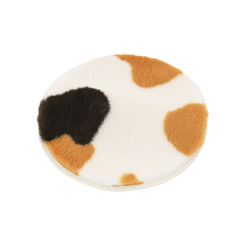 ■フェイクファー チェアパッド アイボリー 約φ38cm [椅子用 三毛猫柄 円形マット 滑り止め付き 大島屋]