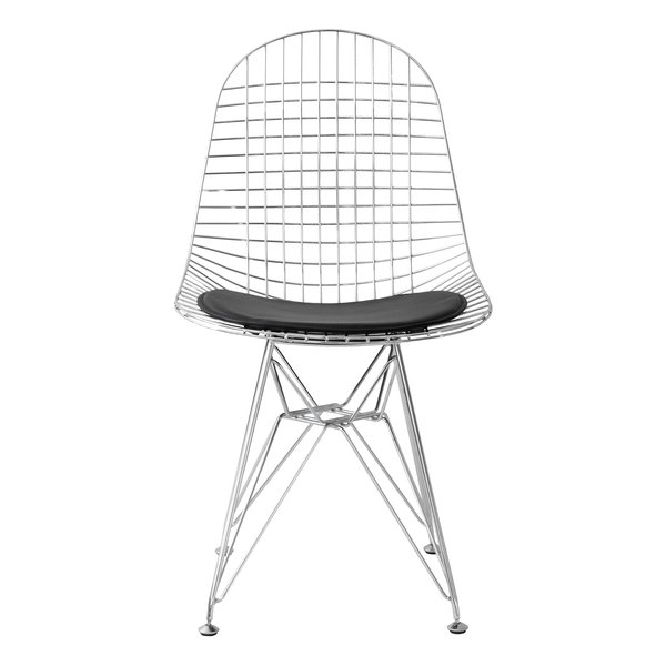 ミッドセンチュリーを代表するデザイナーのイームズ(Charles&Ray Eames)の1951年に製品化された「DKR」のチェアのリプロダクト品。 「ワイヤーメッシュチェア」「ワイヤーチェア」とも呼ばれ今でも人気のアイテムです。 スチールのワイヤーが網目状に構成された背もたれは軽量かつ耐久性に優れており、ウレタンの入ったレザーの座面でお尻が痛くなりにくいデザインです。 座面のクッションはブラックとホワイトの2カラーをご用意。お好みでお選びいただけます。 商品名 イームズ ワイヤーチェア サイズ 幅47.5×奥行き52×高さ85.5cm(座面高:46cm) 材質 合成皮革、ウレタン、スチール(クロムメッキ) 備考 組立式(約10分) ※基本送料無料(沖縄県・北海道・一部地域・離島等の条件によりましては別途送料が必要となります。) 検索キーワード Eames ワイヤーメッシュチェア ワイヤー チェア いす リビング 食卓 カフェ こだわり 店舗用 お洒落 オシャレ 白 黒 金属 レザー 皮 かっこいい クール ミッドセンチュリー 人気 おすすめ