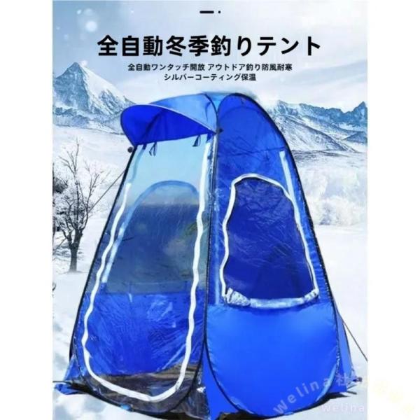 ■スポーツテント ポップアップ バックパックテント ブルー Welina 防蚊防風 ダブルドア窓付き 釣り/ビーチ/観戦に 設営簡単 1人用