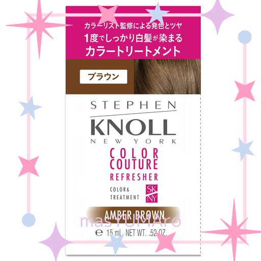 STEPHEN KNOLL(スティーブン ノル)カラークチュール カラートリートメント 003 ブラウン 200g 白髪染め ダメージ補修 ヘアカラー サロンカラー:003 ブラウン / 爽やかさと女性らしさを併せ持つ、グリーンフローラルムスクの香り。カラーリスト監修による発色とツヤ。ダメージを受けた髪も補修し、一度でしっかり白髪が染まるカラートリートメント。いつものトリートメントかわりの使用で、ダメージを補修しながら、根もとや生え際まで自然な髪色に染め上げるヘアカラートリートメントです。地毛の色とも自然になじむ深みのある色設計。 カラーリスト監修による深みのある色設計により、白髪部分が目立ちにくく地毛の色とも自然になじみます。白髪への染まりやすさにこだわった高浸透×高密着ジェル処方。髪1本1本へのなじみと密着力を高め、1回の使用でもしっかりと染まりやすい処方です。ヘアカラーなどで傷んだ髪も、毛髪内部と毛髪表面からダブルで補修。