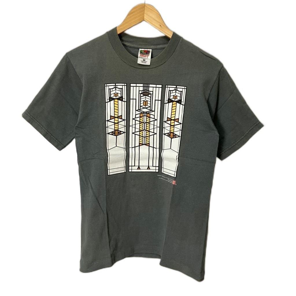 ■【中古】FRUIT OF THE LOOM FRANK LLOYD WRIGHT Art graphic 90s アートTシャツ 半袖 カット S グリーン メンズ