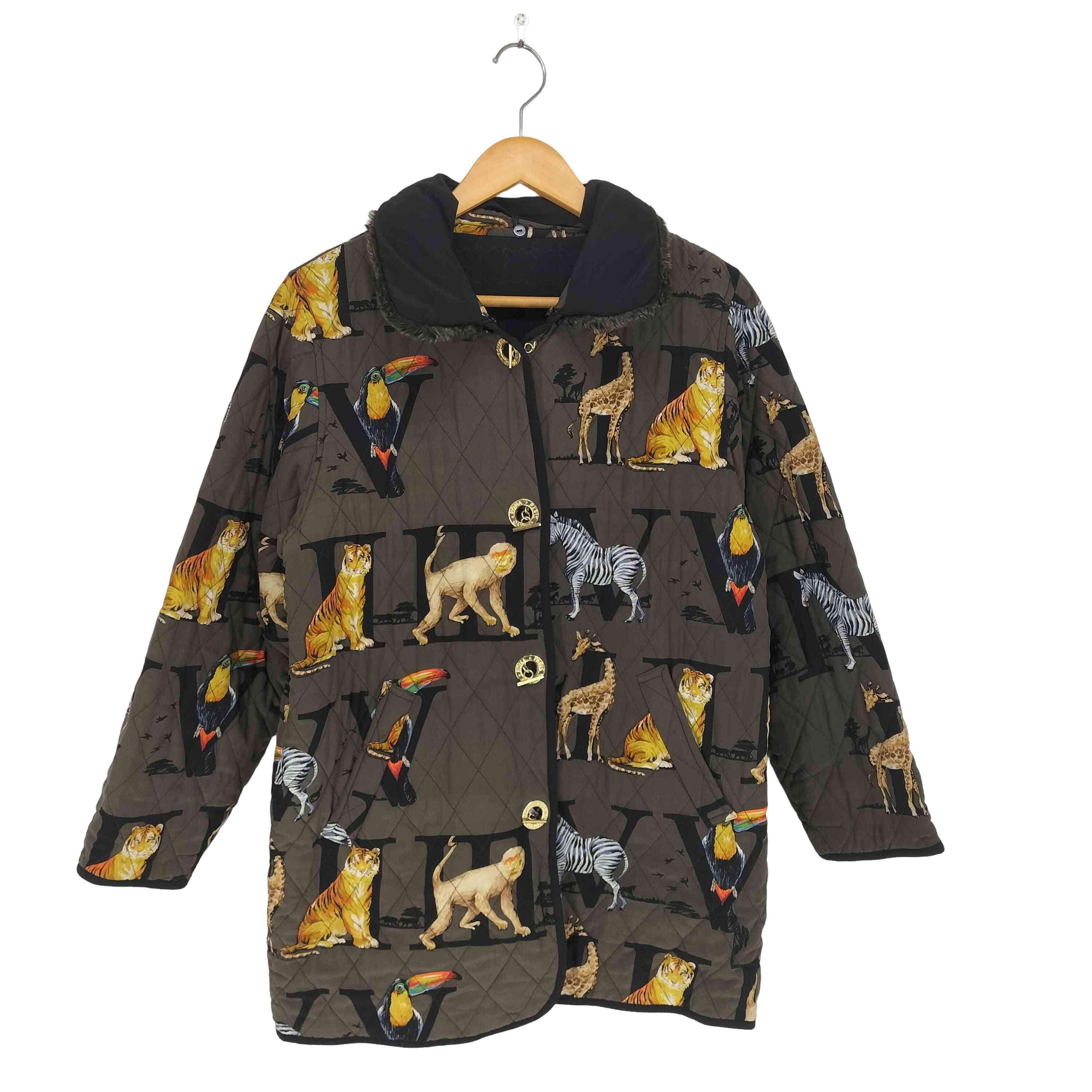 ■Dinah Flo(ダイナフロー) アニマル ローマ数字 シルク地キルティングジャケット レディース JPN:M 【中古】【ブランド古着バズストア】
