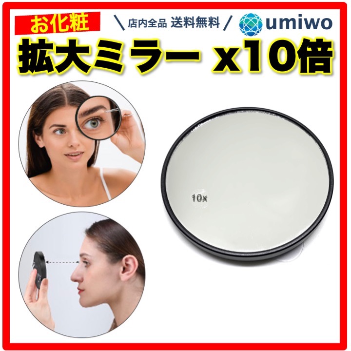 ■拡大ミラー 10倍 吸盤付き 拡大鏡 メイク ミラー コンパクト 見えすぎ うぶ毛 毛穴 スキンケア 目元 眉毛 よく見える 老眼 薄手 化粧 化
