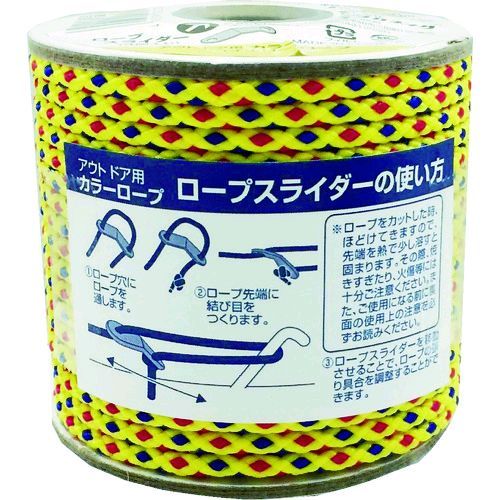 ■(株)ユタカメイク ROC-10 アウトドア用カラーロープ イエロー 3.5mm×20m