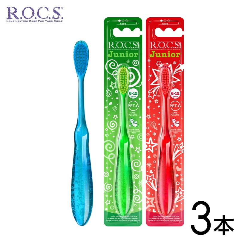 ■【送料無料】ROCS PRO ロックスプロ 歯ブラシ JUNIOR ジュニア 6〜12歳向け【3本】