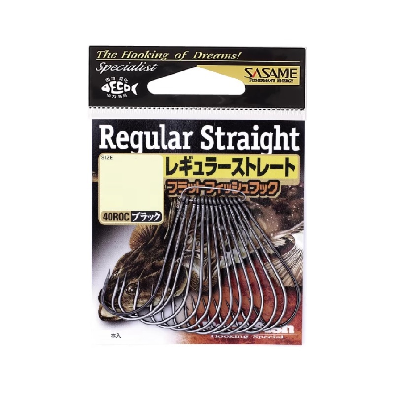 ストレート系やシャッドテール系のワームで狙うことが多いヒラメ、マゴチ等に最適。ゴロタ浜や砂底を這うように攻めるワーミングでフラットフィッシュを撃破する。SASAMEササメ フラットフィッシュフック レギュラーストレート●品番:40ROC●カラー:黒●号数:2/0号●入数:13本入り●標準自重(mg):428.1●標準線径(mm):1.05