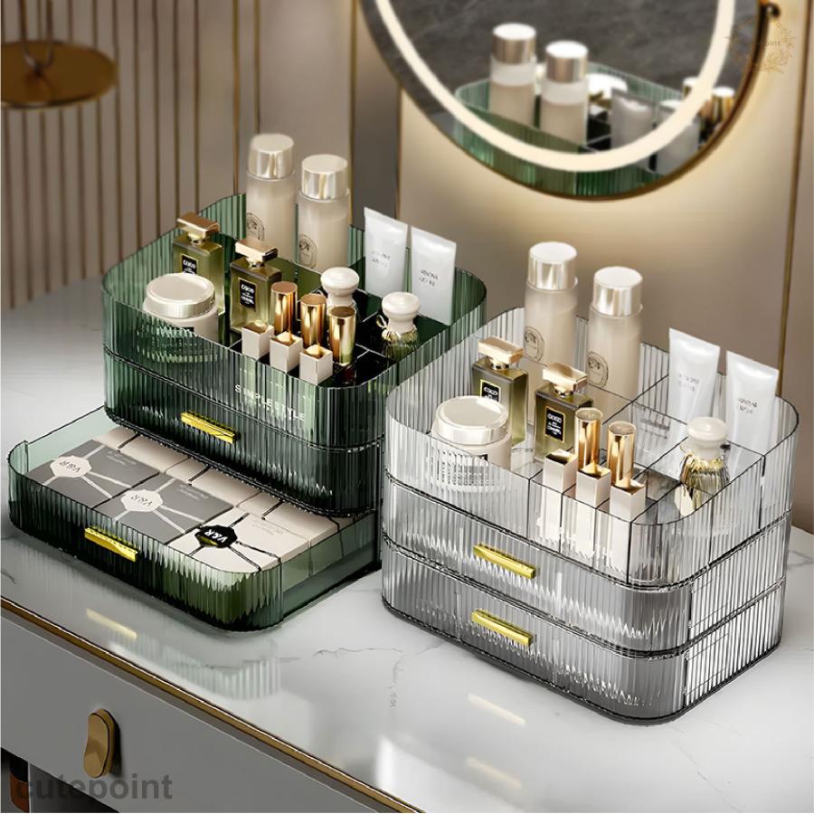 ■メイクボックス メイク収納 メイク用品 収納ボックスケース 大容量 スタンド収納 引き出し付き 多機能 化粧水 メイクアイテム
