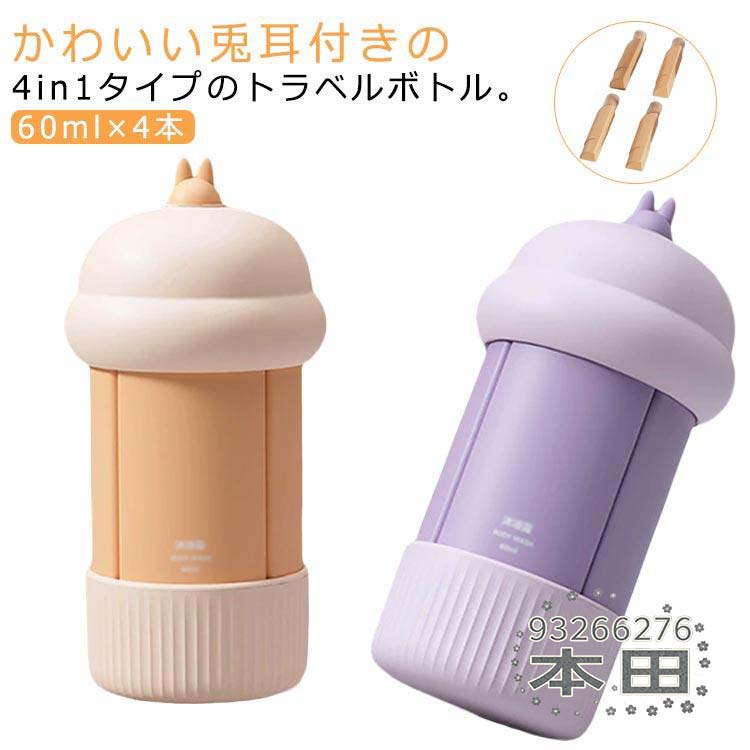 小分けボトル 出張 60ml 漏れない クリーム シリコン 4in1 ボディソープ スキンケア 4in1 化粧水 乳液 小分け容器 旅行用 ボトル ボ