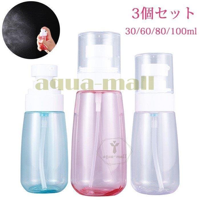 ■スプレーボトル アルコール対応 3個セット 小分けボトル 30/60/80/100ml 詰替え容器 詰替ボトル スプレー容器 カラフル 化粧水 お出かけ