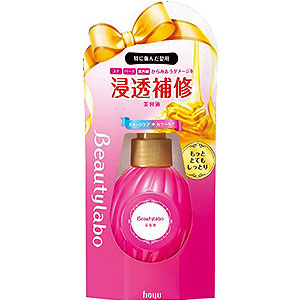 特徴ビューティラボ美容液で自信のカラー美髪へ。●ハニーグロス処方採用の「浸透補修」美容液●コテやパーマ、紫外線など複雑にからみあう現代人のダメージヘアに、保湿成分がスッと浸透して補修する●髪に大切な2つのケア「ダメージケア」&「カラーケア」●透明感の中に華やかさを感じる「クリスタルフルーティブーケ」の香り●「かわいさ」と「効果感」のあるパッケージデザイン●ダメージレベルや仕上がりの質感で選べる使用方法・適量(セミロングで2〜3回プッシュ)を洗髪後のタオルドライした髪や乾いた髪によくなじませます。・洗い流す必要はありません。・髪が太めの方や傷んだ部分(毛先など)はしっかりと塗布してください。