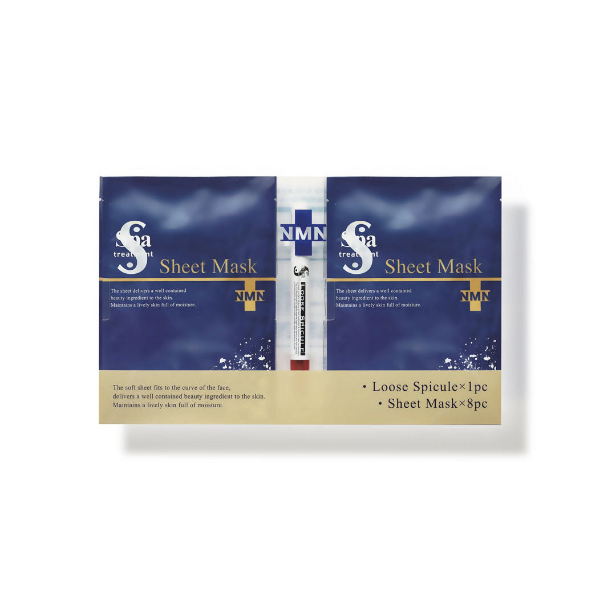 ■美容液マスクセット!ルーススピクルに配合された特殊技術で加工したヒアルロン酸結晶(マイクロスピクル)がお肌の微細な凹凸に入り込んでお肌に留まります。その後に貼る「NMN(ニコチンアミドモノヌクレオチド)」配合の全顔用シートマスクに含まれる様々な美容成分とともにお肌の角層まで浸透。【セット内容】ルーススピクル:2.3g、NMNシートマスク:美容液21ml含浸マスク×8枚入