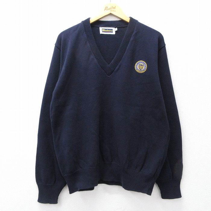 ■古着 長袖 セーター メンズ 90年代 90s デトロイト スクール Vネック USA製 濃紺 25nov14
