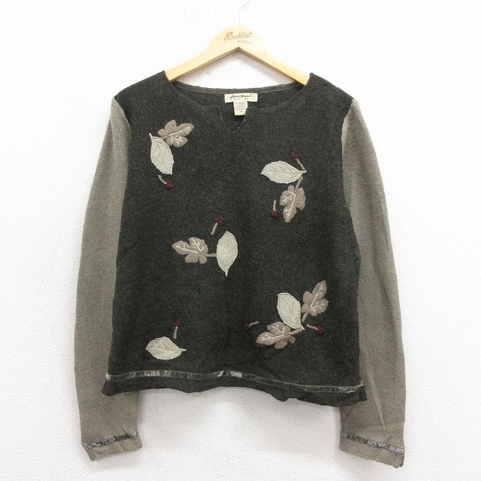 ■古着 エディーバウアー 長袖 セーター レディース 00年代 00s 葉 ラムウール 濃緑系 25nov28
