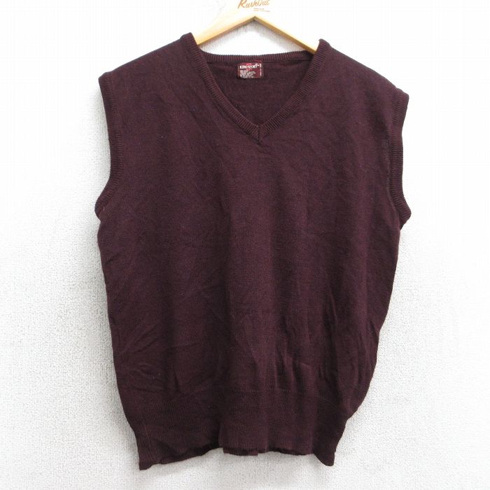 ■古着 ニット ベスト メンズ 80年代 80s 無地 アクリル Vネック 茶 25nov14