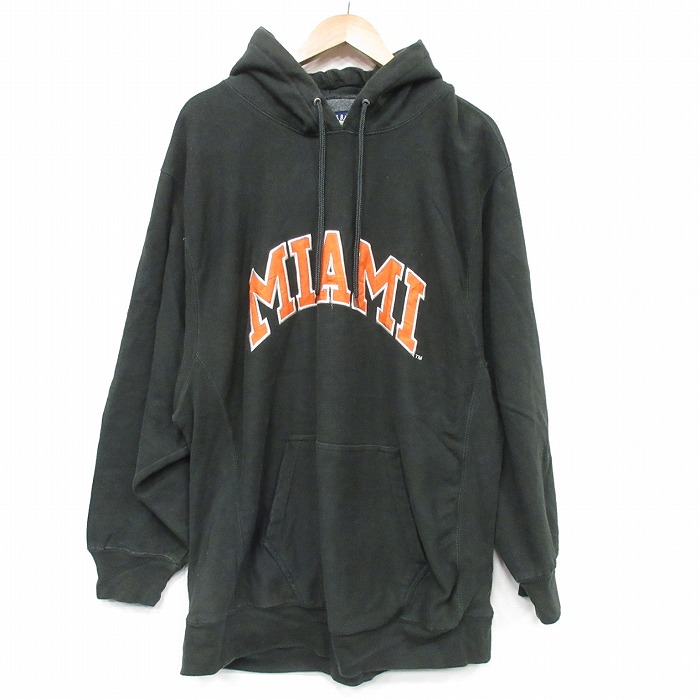 ■古着 STEVE & BARRYS 長袖 スウェット パーカー メンズ マイアミ 刺繍 濃緑 25nov18