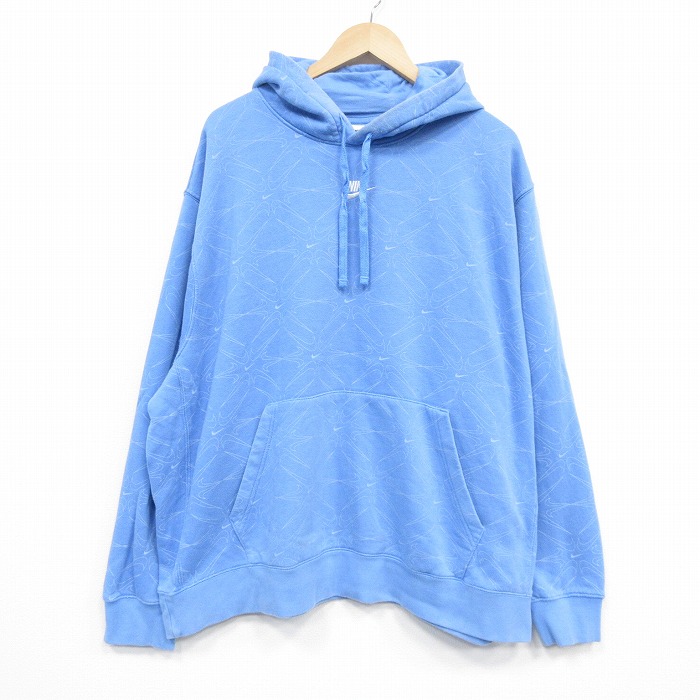 ■古着 ナイキ NIKE 長袖 スウェット パーカー メンズ ワンポイントロゴ 大きいサイズ 水色 25nov18