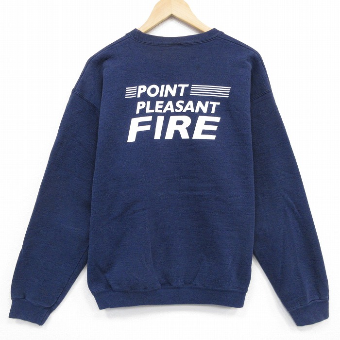 ■古着 フルーツオブザルーム 長袖 スウェット メンズ 00年代 00s ファイヤー クルーネック USA製 紺 25nov15