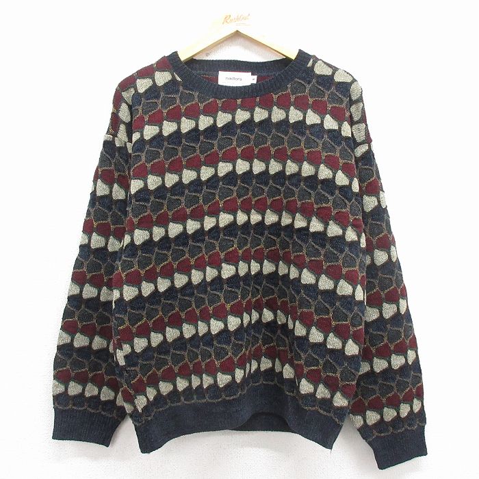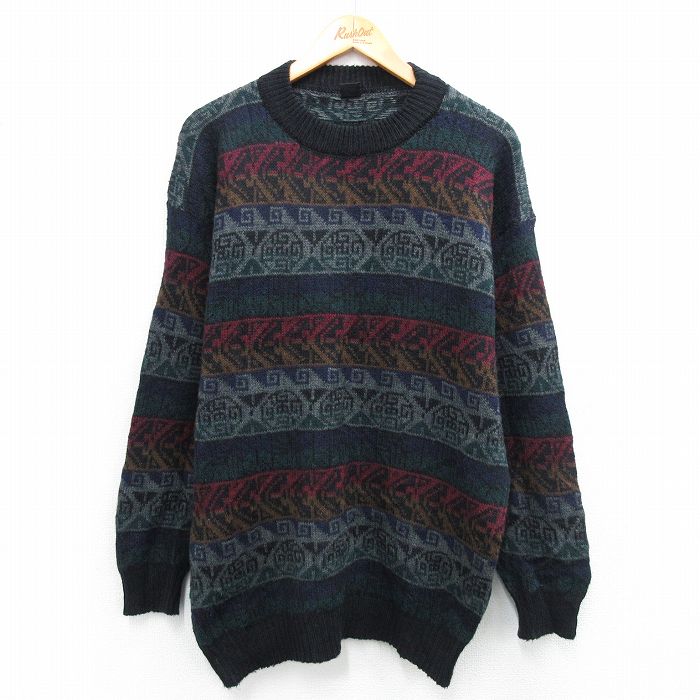 ■古着 長袖 セーター メンズ 90年代 90s ウール クルーネック 黒他 25nov15