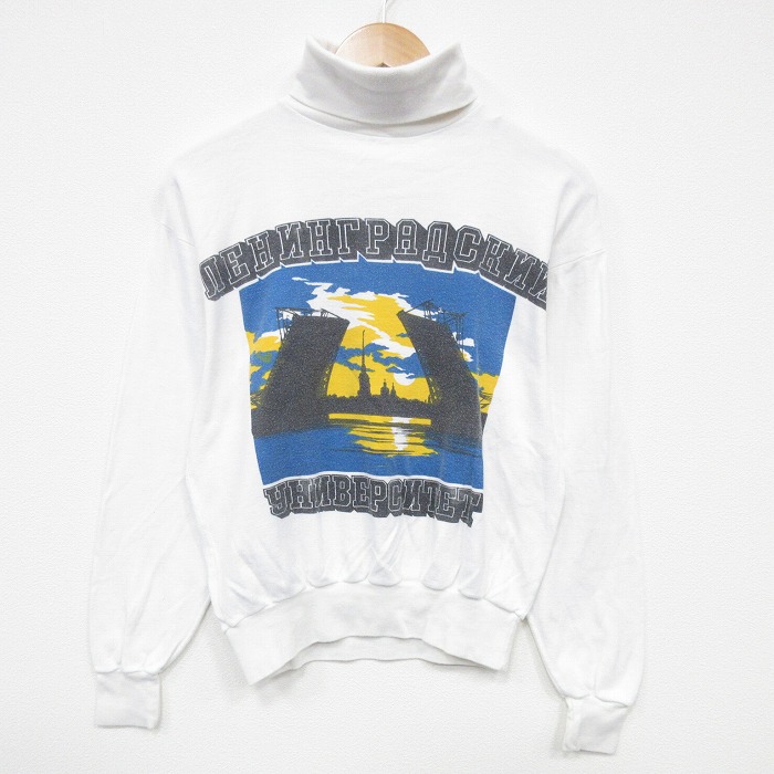■古着 長袖 トップス メンズ 80年代 80s 橋 タートルネック ハイネック 白 25nov19