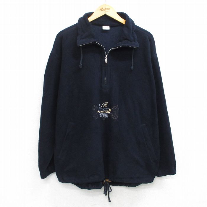 ■古着 長袖 ハーフジップ フリース ジャケット メンズ シロクマ 刺繍 USA製 濃紺 25nov15