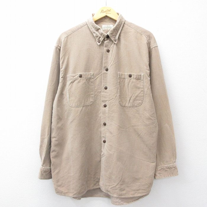 ■古着 セントジョンズベイ 長袖 シャツ メンズ 00年代 00s コーデュロイ 大きいサイズ ロング丈 コットン ボタンダウン ベージュ 25nov26