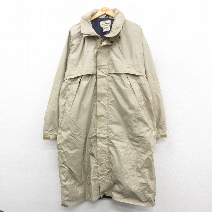 ■古着 エルエルビーン 長袖 ナイロン コート メンズ 90年代 90s ロング丈 ベージュ 内側メッシュ spe 25nov17