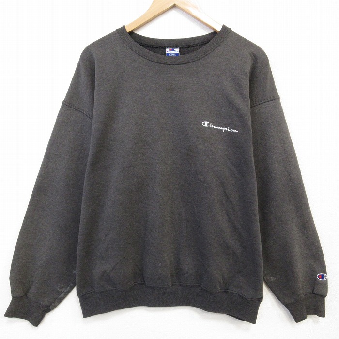 ■古着 チャンピオン champion 長袖 スウェット メンズ 90年代 90s ワンポイントロゴ クルーネック 濃グレー 霜降り 25nov20