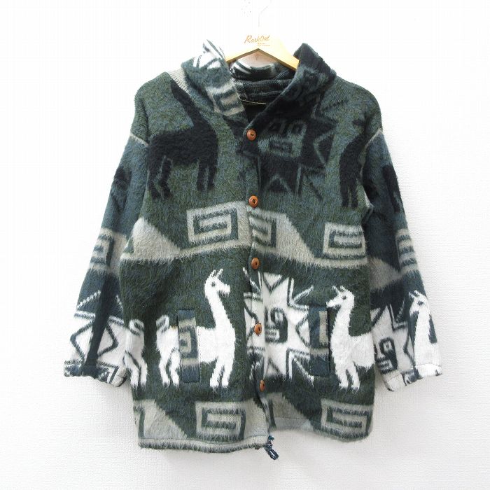 ■古着 長袖 ニット カーディガン パーカー メンズ ラマ 緑他 spe 25nov21