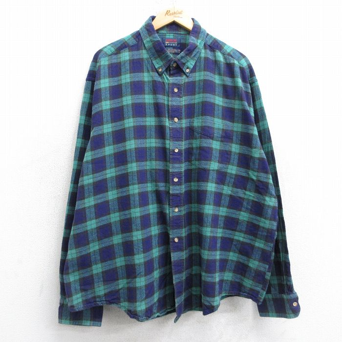 ■古着 アロー 長袖 フランネル シャツ メンズ 90年代 90s 大きいサイズ コットン ボタンダウン 緑他 チェック 25nov13
