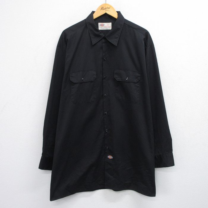 ■古着 ディッキーズ 長袖 ワーク シャツ メンズ 00年代 00s 大きいサイズ ロング丈 黒 25nov15