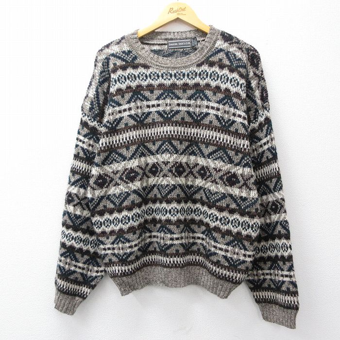 ■古着 長袖 セーター メンズ 90年代 90s フェアアイル アクリル クルーネック USA製 茶系他 spe 25nov21
