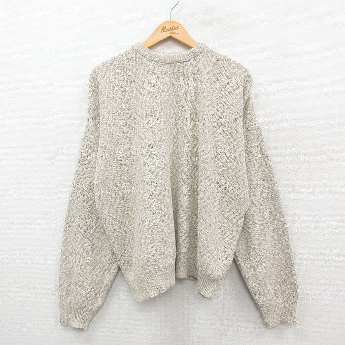 ■古着 長袖 セーター メンズ 90年代 90s 大きいサイズ コットン クルーネック USA製 薄ベージュ他 25nov25