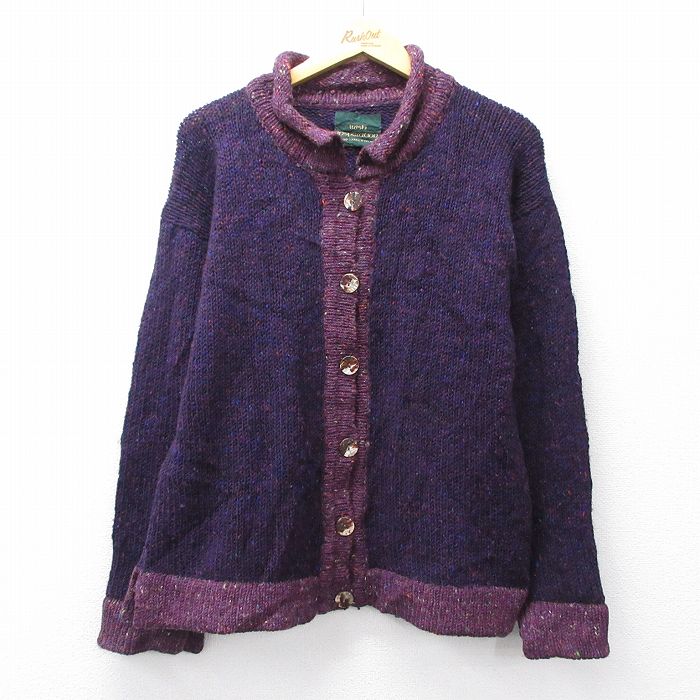 ■古着 長袖 ニット カーディガン レディース 90年代 90s 手織り ウール アイルランド製 紫他 25nov26
