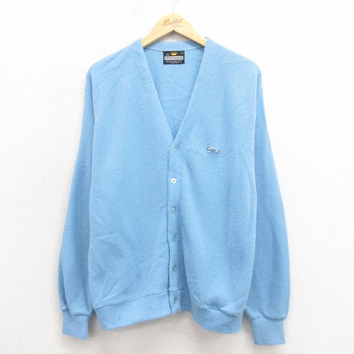 ■古着 長袖 ニット カーディガン メンズ 80年代 80s アクリル 水色 25nov12