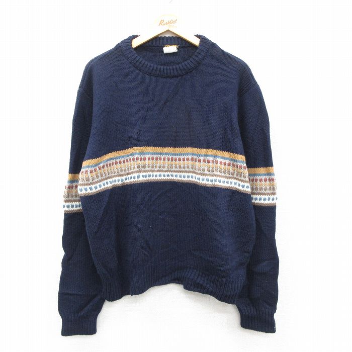 ■古着 長袖 セーター メンズ 00年代 00s クルーネック 紺他 25nov28