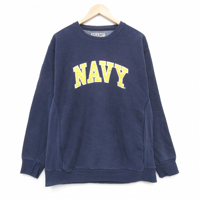 ■古着 STEVE & BARRYS 長袖 スウェット メンズ ミリタリー ネイビー NAVY 刺繍クルーネック 紺 25nov18
