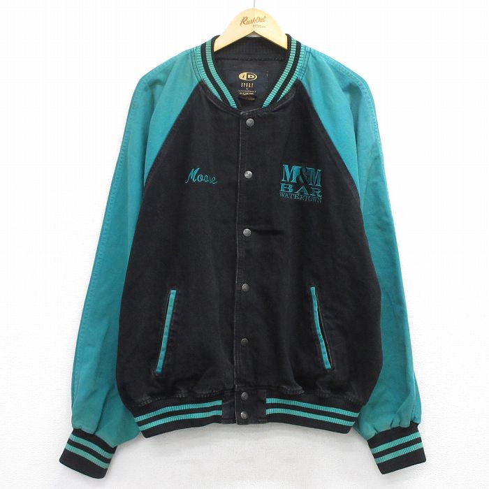 ■古着 長袖 デニム ジャケット スタジャン メンズ M & M ラグラン ツートンカラー 大きいサイズ コットン 黒他 25nov25